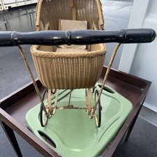Antique wicker iron doll carriage