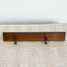 Antique wood coat rack or hat rack with two metal hooks. This was part of a built in in my house that was built in 1910. This is in good antique condition, there is a chip to the wood on one edge. You will notice both edges are unfinished, this is because one edge connected to the side of a wall and the other edge connected to a longer portion of coat/hat rack. 17 3/8 inches long