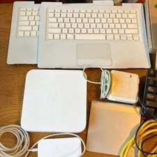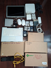 3 Apple laptop batteries 2014 MB Air 13”- condition unknown 2010 MB Pro- Box says 1000 cycles and still normal 2015 MB pro- battery model A1493- condition unknown MacBook Air screen for 13” 2015- 2017 MB Air- condition unknown. 1 Alcatel Flip Phone 2- MacBook keyboards for white 2006-2008 MacBooks 1- AirPort Extreme- works good Ethernet Cat 6 cable. 2 mice- 1 is Apple wireless mouse. Apple trackpad- cracked. Apple MagSafe charger-85 watt- condition unknown. 2 Apple hard drives- 250 GB each. Various other items that we will throw in to fill the box. No guarantees on these items but we think that they can be used for parts at a minimum. Before purchasing, ask as many questions until you are satisfied.