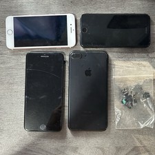 Selling for parts. iPhone 7 Plus, iPhone 7 in black and iPhone 7 in rose gold. iPhone 7 Plus and black iPhone screens do not work due to a torn ribbon. IPhone 7 Plus doesn’t have a logic board. Rose gold iPhone 7 works but gets hot around the camera lens. I don’t know what carrier the rose gold one is but the black ones were used on Straight Talk.