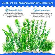 Our aquarium decorations consist of 20 green artificial aquarium plants with various sizes and styles. Great decorations for aquariums and fish tanks. Set of 20 pieces artificial aquarium plants, green and different styles, great for fish tank and aquarium decorations, will make them more beautiful.