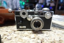 The Argus C3 Camera with 50mm lens and leather case is a vintage piece that exudes classic charm. Known for its durability and high-quality craftsmanship, the Argus brand is synonymous with reliability. The black color adds a sleek and timeless touch to the camera, making it a stylish addition to any photography enthusiast's collection. With its compact size and vintage appeal, the Argus C3 Camera is perfect for capturing timeless moments with a touch of nostalgia.