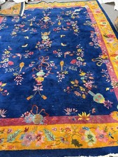 Art Deco Chinese Carpet #9678 Hand Knotted Wool 8.10x11.6 in perfect condition