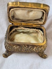 Lining is original. Hinged lid. Late 1800s, early 1900s. 3.5" long, 4" wide, 4" high.
