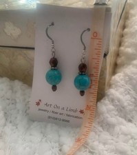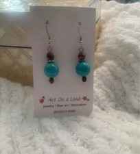 Art On a Limb Handcrafted Turquoise Brown Beaded Dangle Earrings Silver