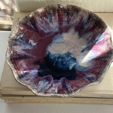 Art Studio Pottery Signed Trinket Dish Bowl Purple Blue Glazed Ruffled Edge