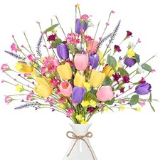 Artificial Easter Stems 12 Pcs Spring Tulips Picks with Colorful Flower