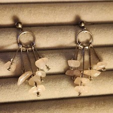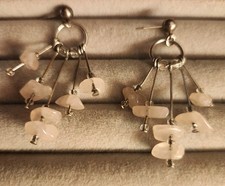 Artisan Rose Quartz Chip Sterling Silver Chandelier Earrings Bohemian