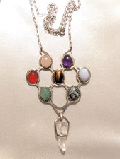 Artisan sterling silver Tree of Life Chakra Real Gemstone with a twin point quart crystal Pendant Necklace 20". This is in excellent condition and is marked "925" on the clasp. The pendant center measures approximately 2" x 3" . Free shipping Offers considered