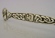 A super quality hand made solid sterling silver caddy spoon or sugar scoop. It is hallmarked for Birmingham 1958 with the maker being W H Darby & Sons Ltd. It has a been superbly made having Celtic design.