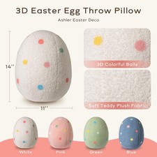 Ashler Easter Pillows, Egg Shaped Throw Pillow, White Spring Easter Decoration, Teddy Sherpa Egg Pillow with Colorful Polka Dots Embroidery, Easter Eggs Decor for Bedroom, Living Room, Couch, 14x11 in.