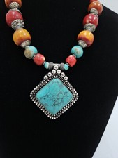 Assorted Resin Beads Tribal Women Pendent Ethnic Fashion Necklace 17"