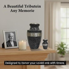 At Peace Memorials Tranquility Black Marble Urn for Ashes SET