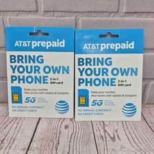 AT&T Prepaid Sim Card Bring Your Own Phone 5G 3 In 1 - Lot Of 2 - FREE SHIPPING