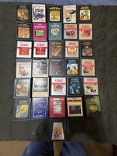 Atari 2600 Video Computer System console bundle with large game lot. Includes console, power cable, RF cable, 2 joysticks, paddle controllers, and approximately 30 game cartridges (Pac-Man, Asteroids, Ms Pac-Man, Q*bert, Defender, Centipede, and more). System and games are untested due to lack of compatible TV. Shows cosmetic wear consistent with age. Please review photos for condition. Sold as-is. Ships securely.