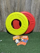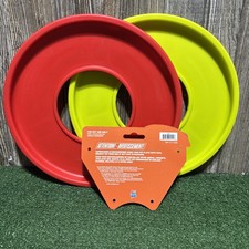 Atomic Flyer Outdoor Dog Toy, 10 Inch Flying Disc Dog Fetch Toy Rubber Lot Of 2. See pictures for item details.