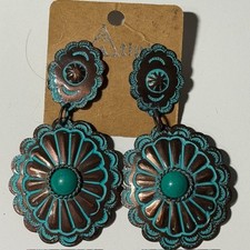 Attitude Dangle Earrings Copper Turquoise Concho Western Style
