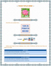 AUCTION TEMPLATE Crown Frame Border Design Turquoise Orange - FREE Shipping
