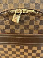 Model: Pegase 55. Damier Ebene coated canvas. Preowned and fully functional with beautiful Damier canvas. Pull bar and wheels are in good working condition. Smooth rolling wheels. Retractable pull handle.