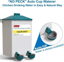 AUTOMATIC CUP WATERER - The drinking cup automatically replenishes itself with clean water, no need chickens to peck any tabs. EASY CLEAN CUP WATERER - The unique doubel wall drinking cup design make it very easy to clean the debris in the cup.
