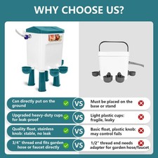 【VERSATILE SOLUTIONS FOR ANY SETUP】Don't have the right wall or fence for hanging a chicken automatic waterer?. No worries! We've designed legs that let you place the float valve chicken waterer directly on the ground.