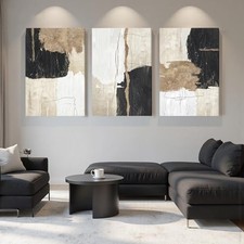 AVECCO 3 Pieces Large Gold and Black Abstract Wall Art, 36"L x 24"W Geometric