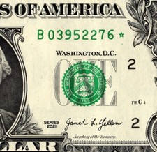 B STAR NOTE 2021 ONE DOLLAR B03952276* REGULAR RUN