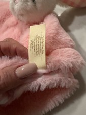 Soft plush bunny security blanket with embroidered “My First Easter” message. Features a sweet white bunny head with pink nose and soft pink blanket body. Perfect for Easter baskets, baby gifts, or nursery comfort items. Details • Bunny plush lovey security blanket • Pink with embroidered “My First Easter” • Soft plush material • White bunny head with pink accents Condition Pre-owned and in good condition. Clean with no stains or tears noted. Please review photos.