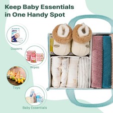 Versatile Baby Essentials Organizer: Ideal for newborns to toddlers - works as a car diaper organizer, travel diaper caddy, or nursery organizer. All-In-One Baby Diaper Storage: The diaper caddy organizer features adjustable dividers to keep diapers, wipes, lotions, toys & baby essentials neatly separated - perfect as a changing table organizer or nursery storage caddy.