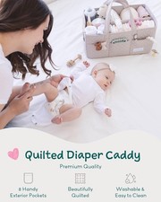 Baby Diaper Caddy Organizer, Quilted Nursery Storage Organizer for Newborn Es...