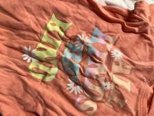 This bundle includes 5 pieces of baby toddler clothing suitable for 18 months old. The set features a variety of styles and colors, including a coral graphic tee, a black and white checkered button-up shirt, and floral patterned tops. All items are made from soft, comfortable materials perfect for everyday wear. Gently used with no major flaws. two bodysuit with snaps and 3 tops for 5 total, minor wash wear, see pics