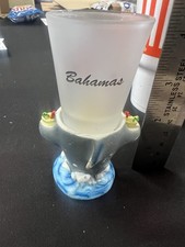 The Bahamas Shark Shot Glass is a collectible barware item featuring a shark design, perfect for adding a unique touch to any drinkware collection.