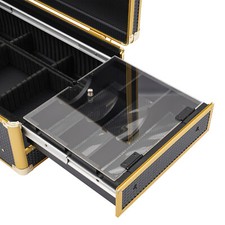 ??Specification Material: Aluminum Alloy, Velvet Cloth, Fireproof Board, PVC, Acrylic, Plastic, Rubber Process: Injection Molding, Electroplating Color: Gold, Black Shape: Rectangular Style: Modern Assembly Required: No Number of Locks: 2 Max. Load-bearing Capacity: 50kg/110.23lbs Product Size: 49.5*32*20cm/19.49*12.6*7.87in Package Size: 51*21*37cm/20.08*8.27*14.57in Gross Weight: 6.3kg/13.89lbs Net Weight: 5.5kg/12.13lbs ??Package Included 1* Barber Carrying Case 2* Keys.