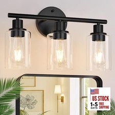 3-Light Bathroom Light Fixtures, 17.23" Black Modern Vanity Lights with Clear Glass Shade, Bathroom Wall Lamp for Mirror Kitchen Living Room Hallway Cabinet Porch. 36-month warranty: We proudly stand behind all our vanity lights for bathroom, ing their quality with a full 36-month warranty.