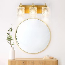 Bathroom Light Fixtures, 3-Light Brushed Gold Vanity Light Over Mirror with Crystal Glass Shades, Bathroom Wall Lights for Mirror Kitchen Bedroom Hallway Living Room. To install, simply connect the wires and attach the shade.