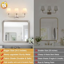 Bathroom Light Fixtures, 3-Light Brushed Nickel Vanity Lights, 24.5" Bathroom Lighting Fixtures Over Mirror with White Fabric Shade, Modern Wall Sconces for Bedroom Living Room Hallway. Compatible with LED, CFL, and incandescent bulbs, allowing you to choose the most suitable option for your needs.