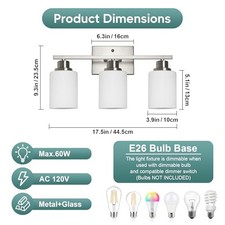 Bathroom Light Fixtures, 3-Light Vanity Light Over Mirror, Brushed Nickel Wall Sconces with Milky White Frosted Glass Shades, Wall Lamp for Living Room Bedroom, E26 Base(Bulbs Not Included). Designed for versatility, it serves as ideal vanity lighting for bathrooms, dressing areas, and powder rooms, while also being suitable for entryways, living spaces, and hallways.