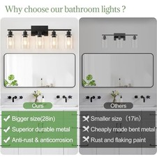 5-Light Bathroom Light Fixtures, Vanity Light with Clear Glass Shades, Matte Black Bathroom Light Fixtures Over Mirror, Modern Bathroom Wall Lamp for Mirror Living Room Cabinet Bedroom. You can install our bathroom mirror lights either upwards or downwards to suit your preference.