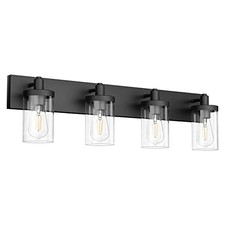 Bathroom Vanity Light Farmhouse 4 Light Matte Black Vanity Lighting Fixtures with Clear Glass Shade(Exclude Bulb). 【MATERIALS】The bathroom vanity light fixture is made of aluminum and transparent glass.