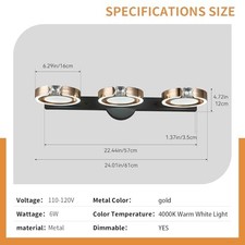 Bathroom Vanity Lights 3-Light 6000K Modern Led Crystal Vanity Light Gold Light Fixtures Over Mirror Crystal Bathroom Vanity Lighting Fixture. Enjoy enhanced visibility and reduced eye strain while saving on energy costs with long-lasting LED technology.
