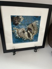 Batik silk Hand Dyed Butterfly Fabric Art. Turquoise blue Framed & Mounted