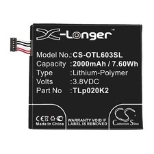 BATTERIE New Li-Pol For : Alcatel 6039S-2AALUS7 One Touch Idol 3 4.7 OT-6039 OT-6039H OT-6039J OT-6039K OT-6039S OT-6039Y Ability: 2000mAh P/N: TLp020K2 C2000023C2 Voltage: 3.8V Dimension: 62.10 x 57.60 x 3.50mm .