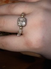 Beaded Adjustable Ring Brown Beige Gray Square Stone Handmade Beads Unisex Style