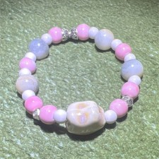 Beaded Gemstone Cord Bracelet Pink White Purple Stackable Round Shape
