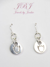 Bear Claw Charm Design Stamped on silver pewter disc on. 925 sterling silver hooks. Each pair of earrings includes rubber ear stoppers .