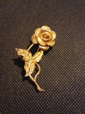 Beau Sterling Silver Rose Vintage Pin Brooch Gold-Tone Signed