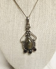 BEAUTIFUL STERLING SILVER LABRADORITE AND GARNET PENDANT NECKLACE