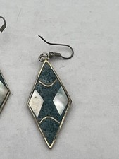 Beautiful Vintage Alpaca Mother Of Pearl Turquoise Dangle Earrings