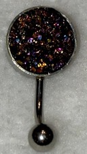 This Belly Button Ring Rainbow Raw Crystal is a stylish and colorful addition to your body jewelry collection. The round crystal main stone in multicolor is securely closed with a ball closure, making it safe and easy to wear.