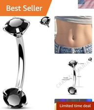 Belly Button Rings 14G 316L Stainless Steel Belly Ring Double Black CZ Classi...